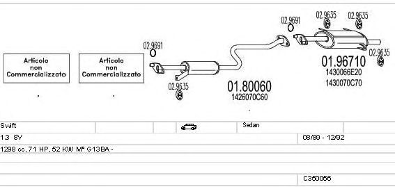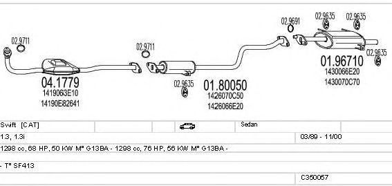 Раб. объем (округленный) - 1,3; тип модели - SF413; вар. оснащения - Sedan; Число дверей - AA; раб. объем (точн.) - 1298; код двигателя - G13BA; Исполнение днищевой планки - Kat; мощность - 56