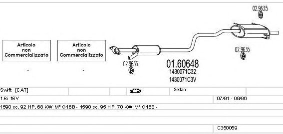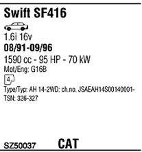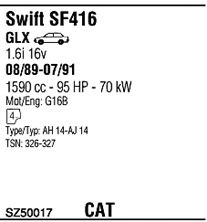 Раб. объем (округленный) - 1,6; тип модели - i 16V; вар. оснащения - Sedan; Число дверей - AA; начиная с г. вып. - 07/1991; до года вып. - 09/1996; раб. объем (точн.) - 1590; код двигателя - G16B; Исполнение днищевой планки - Kat; мощность - 68
