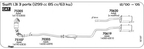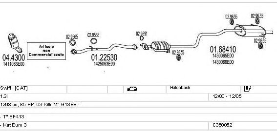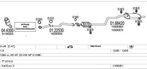 Раб. объем (округленный) - 1,3; тип модели - SF413; вар. оснащения - Hatchback; Число дверей - 3; раб. объем (точн.) - 1298; код двигателя - G13BB; Исполнение днищевой планки - Kat; мощность - 63