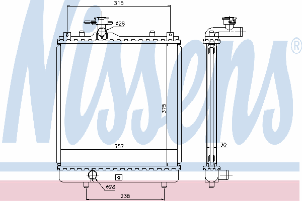 Размеры радиатора: 375-357-30