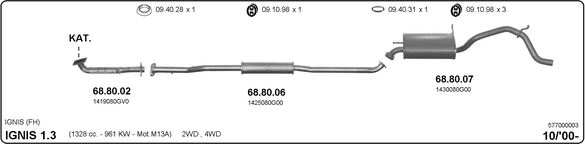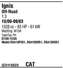 Раб. объем (округленный) - 1,3; тип модели - RG413; начиная с г. вып. - 02/2001; раб. объем (точн.) - 1328; код двигателя - M13A; Исполнение днищевой планки - Kat; мощность - 61