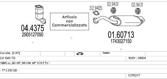 Глушитель в сборе: TOYOTA, COROLLA седан (_E12J_, _E12T_)
