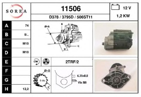 Мощность стартера [кВт]: 1,2