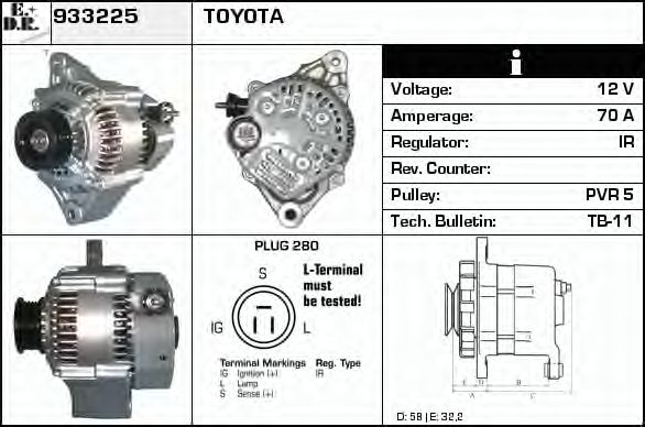 ток зарядки от генератора (А): 70