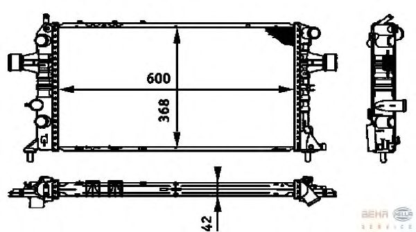 Размеры радиатора: 600 X 368 X 42