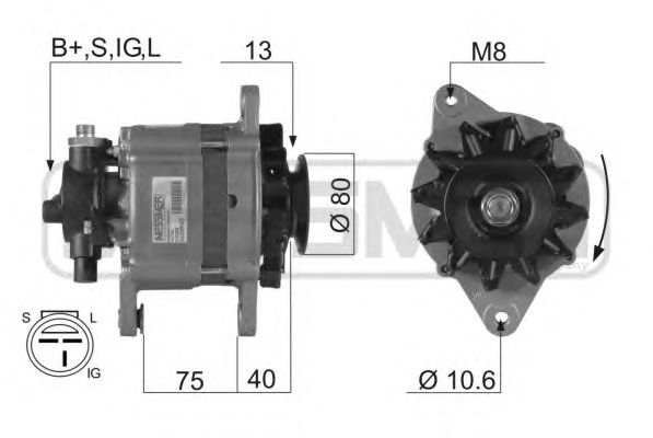 Модель бортовой сети: Для транспортного средства с 12В бортовой сетью Напряжение [В]: 12 ток зарядки от генератора (А): 70 Количество ребер: 1 ? шкива [мм]: 80 Клемма: M5 Длина 2 [мм]: 42 Длина 1 [мм]: 42 ? отверстия 1 [мм]: 10 Длина 3 [мм]: 77 Толщина 1 [мм]: 13