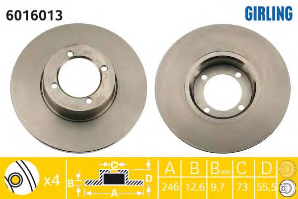 Толщина тормозного диска (мм): 12.5