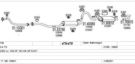 Раб. объем (округленный) - 2,4; тип модели - TD; вар. оснащения - Sedan Stationwagon; начиная с г. вып. - 01/1986; раб. объем (точн.) - 2383; код двигателя - D24T; мощность - 80