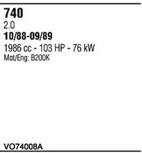 Раб. объем (округленный) - 2; тип модели - , 2.0i; вар. оснащения - Sedan Stationwagon; Число дверей - AA; раб. объем (точн.) - 1986; код двигателя - B200K; мощность - 76