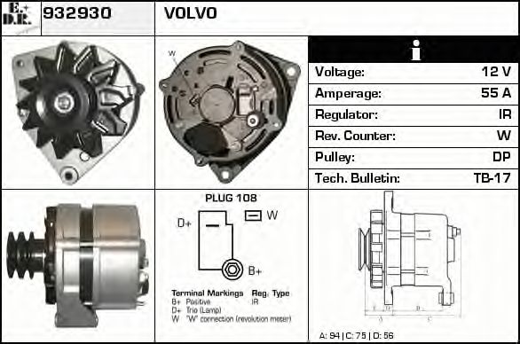 Расстояние от ременного шкива до генератора [мм]: 94,5