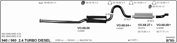 Глушитель в сборе: VOLVO, 940 Mk II универсал (945)