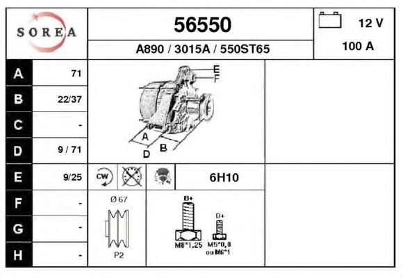 Напряжение [В]: 12 Сила тока [A]: 100 Направление вращения: По часовой стрелке Опции: С встроенным регулятором Номер технической информации: C04 Соединение/клемма: Без подключения к тахометру Количество ребер: 2 Ременной шкив: С двойным шкивом Диаметр [мм]: 67