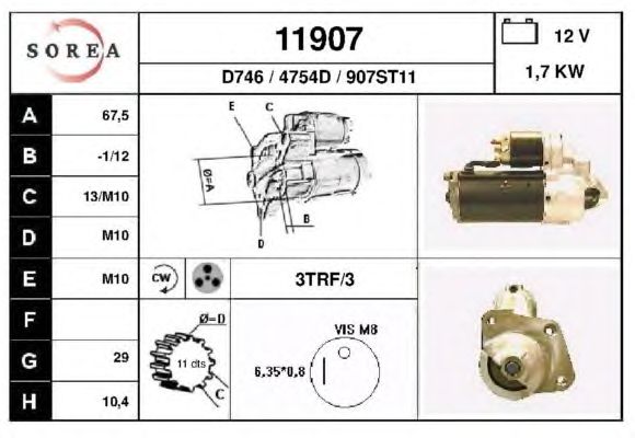 Мощность стартера [кВт]: 1,7