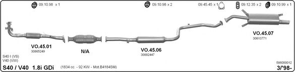 Глушитель в сборе: VOLVO, S40 I (VS)