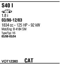 до года вып. - 10/2001; код двигателя - B 4184 SM; тип модели - VS