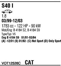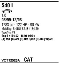 начиная с г. вып. - 01/2001; код двигателя - B 4184 S9; тип модели - VS