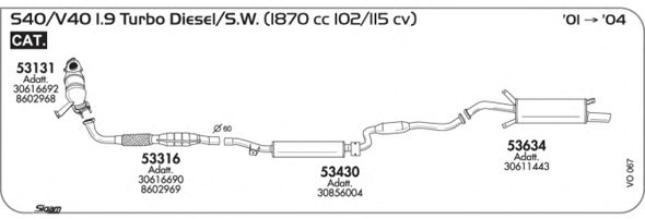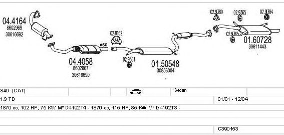 Раб. объем (округленный) - 1,9; тип модели - TD; вар. оснащения - Sedan; начиная с г. вып. - 01/2001; раб. объем (точн.) - 1870; код двигателя - D4192T3; Исполнение днищевой планки - Kat; мощность - 85