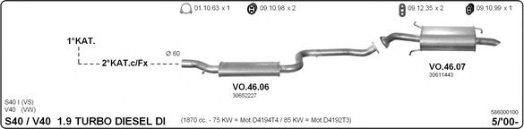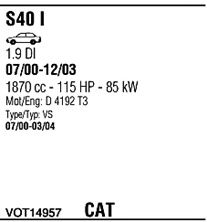 Раб. объем (округленный) - 1,9; тип модели - TD; вар. оснащения - Sedan; начиная с г. вып. - 01/2001; раб. объем (точн.) - 1870; код двигателя - D4192T4; Исполнение днищевой планки - Kat; мощность - 75