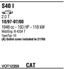 Раб. объем (округленный) - 1,9; тип модели - i Turbo 16V; вар. оснащения - Sedan; до года вып. - 12/2000; раб. объем (точн.) - 1948; код двигателя - B4204T; Исполнение днищевой планки - Kat; мощность - 118