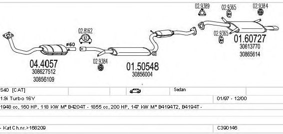 Раб. объем (округленный) - 1,9; тип модели - i Turbo 16V; вар. оснащения - Sedan; до года вып. - 12/2000; раб. объем (точн.) - 1855; код двигателя - B4194T; Исполнение днищевой планки - Kat; мощность - 147