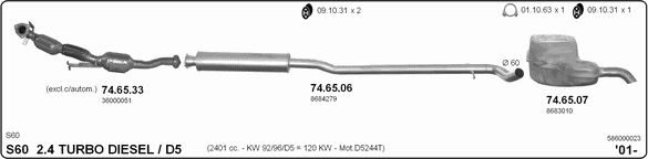 Глушитель в сборе: VOLVO, S60