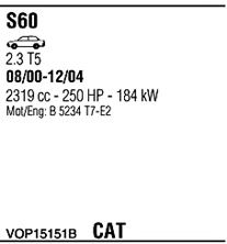 Раб. объем (округленный) - 2,3; тип модели - Turbo; вар. оснащения - Sedan; начиная с г. вып. - 01/2001; до года вып. - 08/2004; раб. объем (точн.) - 2319; код двигателя - B5234T3; Исполнение днищевой планки - Kat; мощность - 184