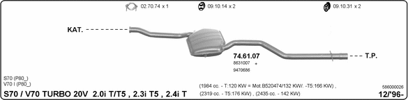 Глушитель в сборе: VOLVO, S70 (LS)