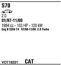 начиная с г. вып. - 12/1998; до года вып. - 08/2000; код двигателя - B 5204 T4; вар. оснащения - 2.0 Turbo
