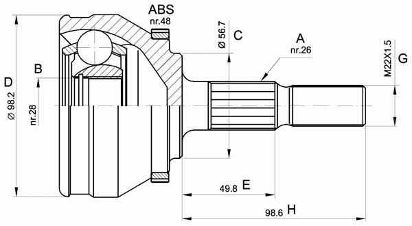 Число зубцов кольца ABS: 48
