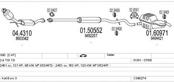 Глушитель в сборе: VOLVO, S80 I (TS, XY)