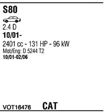 Раб. объем (округленный) - 2,4; тип модели - TDi TD; вар. оснащения - Sedan; раб. объем (точн.) - 2401; код двигателя - D5244T; Исполнение днищевой планки - Kat; мощность - 120