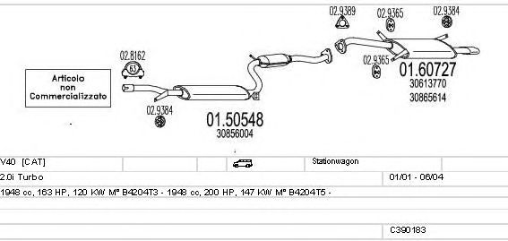 Раб. объем (округленный) - 2; тип модели - i Turbo; вар. оснащения - Stationwagon; начиная с г. вып. - 01/2001; раб. объем (точн.) - 1948; код двигателя - B4204T5; Исполнение днищевой планки - Kat; мощность - 147