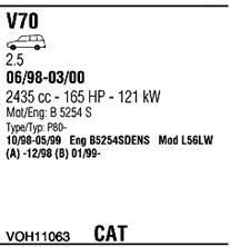 начиная с г. вып. - 10/1998; до года вып. - 05/1999; код двигателя - B 5254 S2; тип модели - P80-