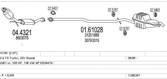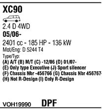 Раб. объем (округленный) - 2,4; тип модели - TD Turbo, 20V D; раб. объем (точн.) - 2401; код двигателя - D5244T4; Исполнение днищевой планки - Kat; мощность - 136