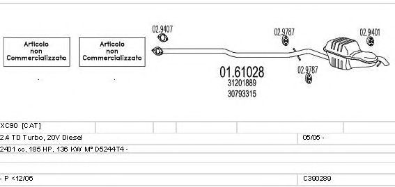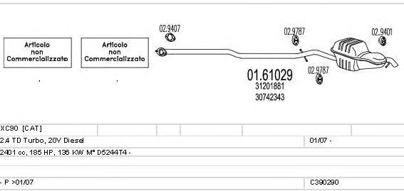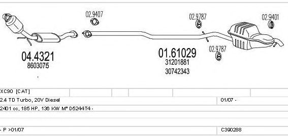 Раб. объем (округленный) - 2,4; тип модели - TD Turbo, 20V D; Число дверей - C; начиная с г. вып. - 01/2007; раб. объем (точн.) - 2401; код двигателя - D5244T4; Исполнение днищевой планки - Kat; мощность - 136
