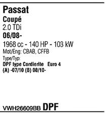 Для транспортных средств с дизельным фильтром тонкой очистки; код двигателя - CBAB; с № шасси - 3C-9-500001