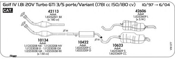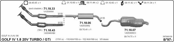 Раб. объем (округленный) - 1,8; тип модели - i GTi Turbo; вар. оснащения - Hatchback; до года вып. - 06/2004; раб. объем (точн.) - 1781; код двигателя - AUM; с № шасси - >1J-1-044000; до номера шасси - <1J-4-200000; Исполнение днищевой планки - Kat; мощность - 110