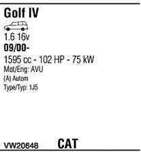 Раб. объем (округленный) - 1,6; тип модели - i; вар. оснащения - Stationwagon; начиная с г. вып. - 09/2000; раб. объем (точн.) - 1595; код двигателя - AVU; с № шасси - >1J-1-044000; до номера шасси - <1J-6-050000; Исполнение днищевой планки - Kat; мощность - 75