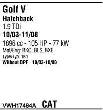 С регулируемым катализатором (3-х ступенчатый); код двигателя - BXE; с № шасси - 1K-4-000001; до номера шасси - 1K-9-200000