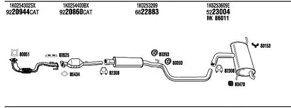 С регулируемым катализатором (3-х ступенчатый); до года вып. - 05/2006; код двигателя - BCA; с № шасси - 1K-5-500001; до номера шасси - 1K-6-650000