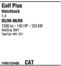 Раб. объем (округленный) - 1,4; тип модели - TSi; раб. объем (точн.) - 1390; код двигателя - CAVD; с № шасси - >1K-7-500001; до номера шасси - <1K-9-900000; Исполнение днищевой планки - Kat; мощность - 118