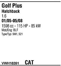 С регулируемым катализатором (3-х ступенчатый); код двигателя - BLF; с № шасси - 1K-5-5000001; до номера шасси - 1K-9-900000
