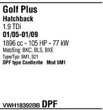 Раб. объем (округленный) - 1,9; тип модели - TDi; раб. объем (точн.) - 1896; код двигателя - BXF; с № шасси - >1K-5-550000; до номера шасси - <1K-9-900000; Исполнение днищевой планки - Kat; мощность - 66