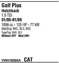 Раб. объем (округленный) - 1,9; тип модели - TDi; раб. объем (точн.) - 1896; код двигателя - BKC; с № шасси - >1K-5-550000; до номера шасси - <1K-9-900000; Исполнение днищевой планки - Kat; мощность - 77