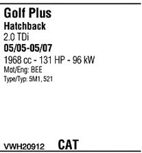 Раб. объем (округленный) - 2; тип модели - TDi; раб. объем (точн.) - 1968; код двигателя - AZV; с № шасси - >1K-5-550000; до номера шасси - <1K-9-900000; Исполнение днищевой планки - Kat; мощность - 100