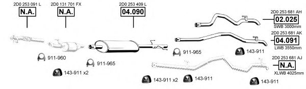 Раб. объем (округленный) - 2,8; тип модели - TDi TD LT 28, 3; раб. объем (точн.) - 2798; код двигателя - AGK; с № шасси - >2D-W-002001; до номера шасси - <2D-7-010000; Исполнение днищевой планки - Kat; мощность - 92