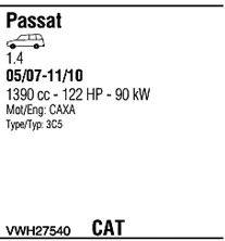 С регулируемым катализатором (3-х ступенчатый); код двигателя - CAXA; с № шасси - 3C-8-000001; до номера шасси - 3C-B-050000