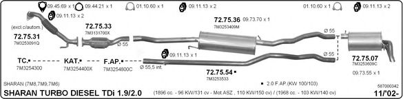 Раб. объем (округленный) - 1,9; тип модели - TDi TD; раб. объем (точн.) - 1968; код двигателя - BVH; с № шасси - >7M-6-014000; до номера шасси - <7M-A-030000; Исполнение днищевой планки - Kat; мощность - 100