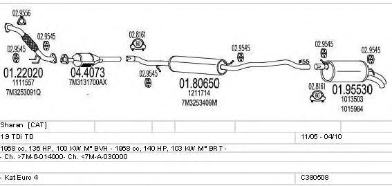 Раб. объем (округленный) - 1,9; тип модели - TDi TD; раб. объем (точн.) - 1968; код двигателя - BRT; с № шасси - >7M-6-014000; до номера шасси - <7M-A-030000; Исполнение днищевой планки - Kat; мощность - 103