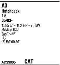код двигателя - BGU; тип модели - 8P1; No. техинформации - 31561; Число дверей - 3
